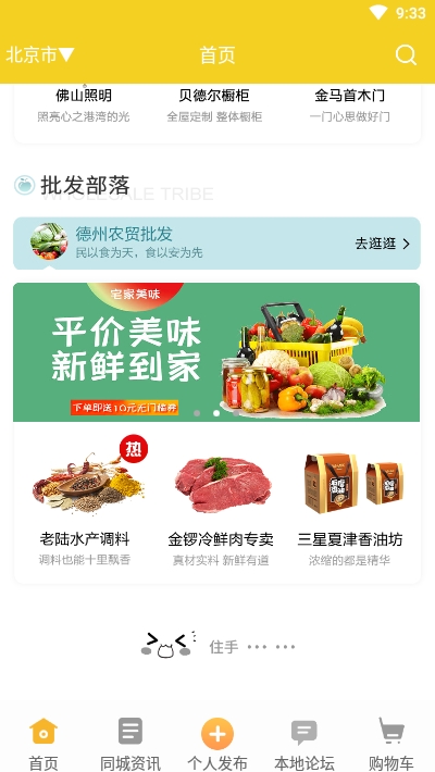 2、以便民菜市场、本地商城、配送到家为民生服务,以跑腿、美食外送等为便民特色服务;
