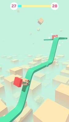 天空之城的路都是逐步上升的状态,注意前方随时可能出现的障碍物,撞到会掉下去;比较能让人忘记游戏的大概就是这慵懒的背景音乐了,你有可能会听着听着忘记操作了。