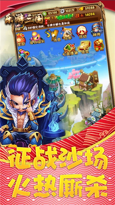 《乐游三国》是一款以三国战争为题材,萌系画风的卡牌手游。再现乱世烽火,英雄为战而生。在传统卡牌回合对战的基础上,加入个性化主角,将各路三国英雄收归麾下,一路成长为三国之王。首创休闲和战斗结合的挂机玩法,解放双手,照样飞速升级。撩人心扉的超萌小萝莉让人蠢蠢欲动,流畅的动作,绚丽的画面,必将为您带来颠覆性的游戏体验!