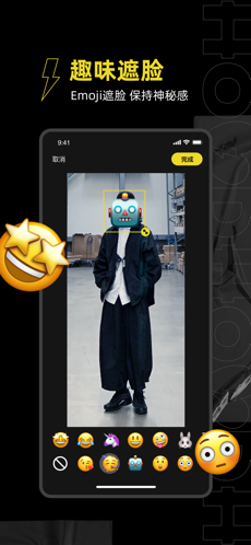厌倦了乏味的看脸社交?在HOOD,遮脸才是我们的通行密码。新潮好玩的emoji贴纸,放大你的独特穿搭品味。不看脸,品味相投,电力满满。
