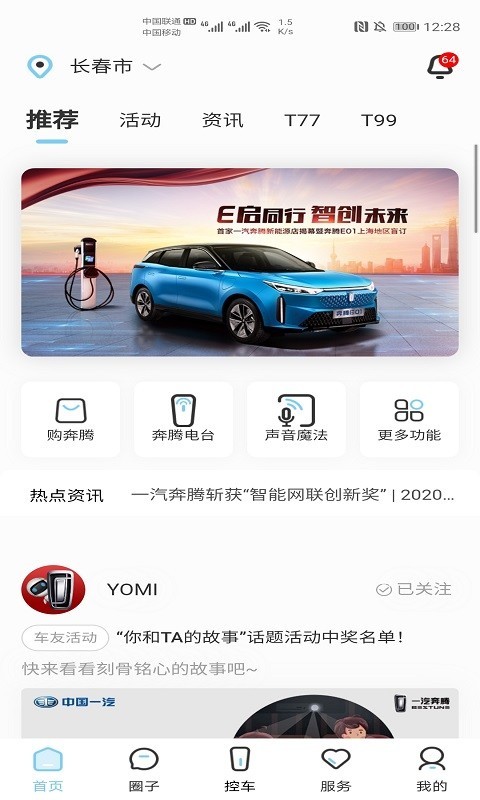 奔腾YOMI是一个智慧车服务软件,提供奔腾资讯、俱乐部、车辆管理、AR智驾、维保预约、活动促销、订单管理、移动商城、经销商查询、备件查询、会员管理一站式服务。