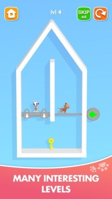1、救救凯蒂猫游戏中需要仔细的思考,滑动正确的拉针,顺利的救援小猫。