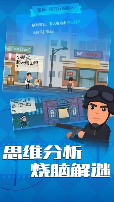 坏蛋别跑手机版是一款真正意义上的警察游戏,包括了警察执行任务时的一切行动过程,能让玩家切实的体验到一名真正的人民警察在执行任务时的惊险刺激感,和任务结束后的组织归属感。