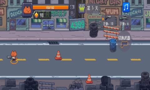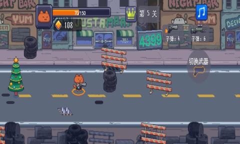 玩家需要操控猫猫解决每一关的变异怪物,以此来获得鱼币,鱼币可以帮助你收集更厉害的枪支以及更炫酷的皮肤。