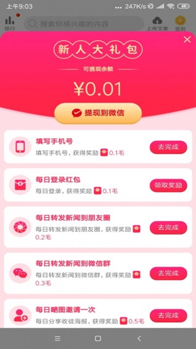 只要点击他人即可获得0.5元的奖励。阅读的点击次数越多,您的收入就越高。