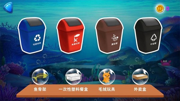 2. 垃圾分类:提倡“海洋环保绿化,不随便丢垃圾”的教育意义,通过答题的方式让小朋友充分了解海洋的垃圾类型;