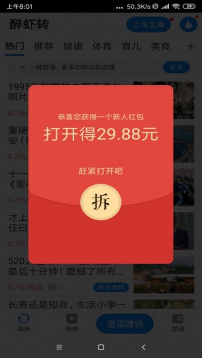 醉虾转APP是发发啦、青虾转旗下新发布的转发文章赚钱软件,于2020年9月24号上午8点首发上线。在醉虾转上面拥有很多不同类型的资讯挑选阅读,将喜欢的资讯转发到朋友圈上,被好友阅读醉虾转就会给我们现金奖励,不需要我们任何的资金投入,收益满10元可提现,一般当天就能结算到账,感兴趣的朋友可以下载醉虾转试试!