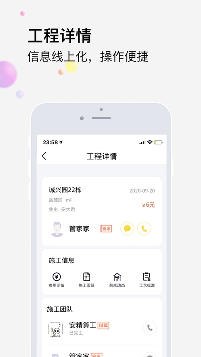 用户可以通过橙万家工匠app来随时进行线上接单。软件提供了一键快速接单等服务,费用的情况一目了然。并且还能对施工团队进行管理,查询施工记录等等,功能十分强大。有感兴趣的朋友不要犹豫,马上下载橙万家工匠app体验吧!