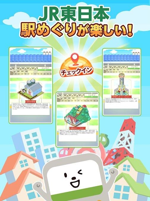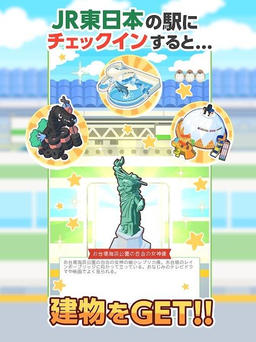 《列车双六镇》是一款城市建设手机游戏,玩家可以尽情创作自己的小镇,游戏利用了 GPS 系统,玩家到 JR 东日本的车站打卡,就可以获得各种不同的建筑物,游戏收录了过百款建筑物让你收集。