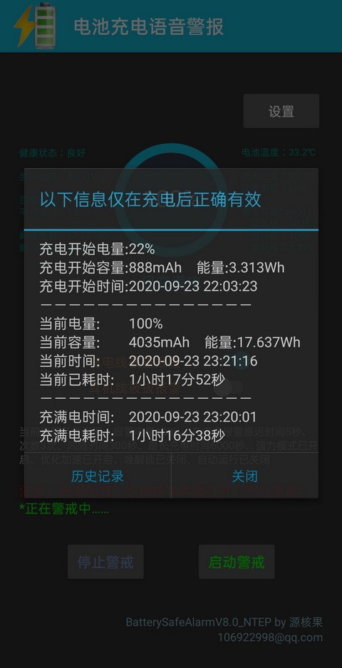 电池充电语音警报软件是您手机安全充电的得力小助手。电池充电语音警报app可在手机充电发生关键事件时,进行中文语音报警提示;可防止手机电池因过充而损坏;因充电时温度或电压过高而发生爆炸;因充电线或耳机线被拔而被盗。此外电池充电语音警报app还可以显示各种电池信息以便了解电池的健康状态!