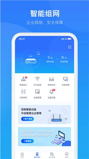 智慧商企app是专门用于提供智能组网的软件。这款app功能十分强大,用户可以在手机端进行智能网组的操作,实时监控网络,故障报修、故障查询等等。有需要的用户赶紧下载这款智慧商企app试一试哦!