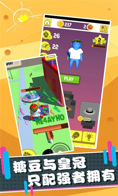 在这里玩家只要操控萌萌的糖豆,利用武器锤飞敌人即可通关,炫酷糖豆皮肤等你解锁,各种棍棒等武器任你选择。