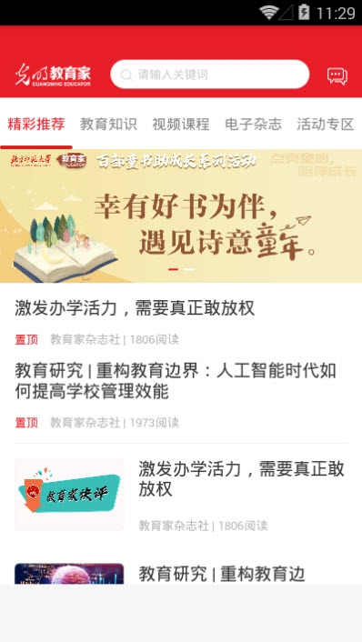 光明教育家app有着海量的专业知识和教育讯息,用户可以随时免费浏览,这里的学习资源可以随时进行分享,视频课程也是免费学习,用户可以随时预定随时学习。当然用户也能自己投稿上传一些学习资源和人一起分享。总之这是一款彻彻底底的教育学习入口,喜欢的朋友可以下载光明教育家app来进行体验!
