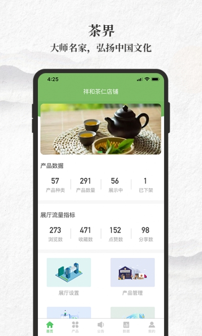 茶界商家版app是入驻茶界的商家使用的管理软件。茶界商家版app主要提供发布、订购商品、处理订单、账户在线结算等功能。茶界商家版app让商家对线上店铺的管理更加方便、全面、系统。