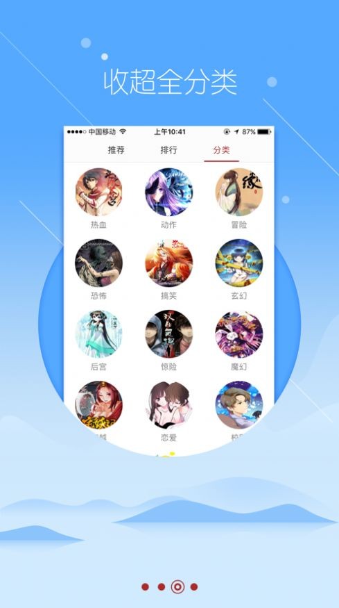 1、各种不同的分类的漫画新资源都会很快的搜索到,随时去阅读都能打发时间的;