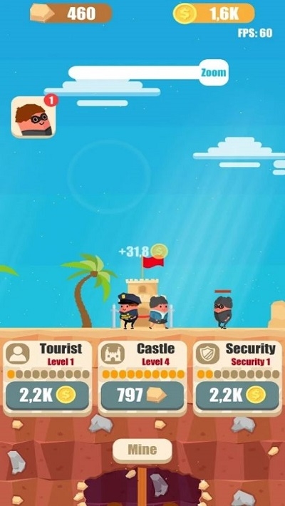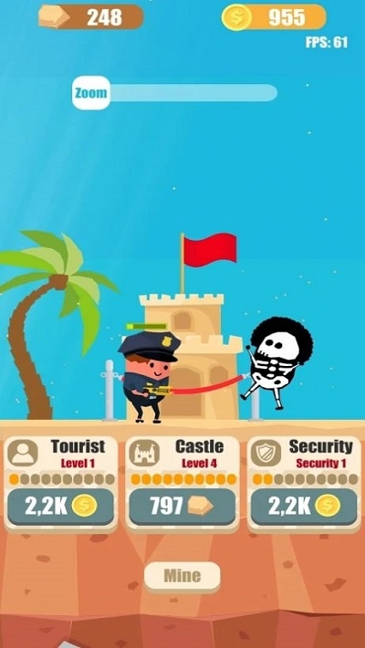 空闲沙堡的整体玩法就是放置挖矿,玩家在游戏中可以分配合适的人手在沙堡当中进行矿物的采集,并且随着资源的不断开采也可以雇佣更多的人手来增加自己的效率。不过我们要注意的是那些觊觎我们宝物的不法分子,所以一定要安排足够的安保人员来保护我们的沙堡哦!