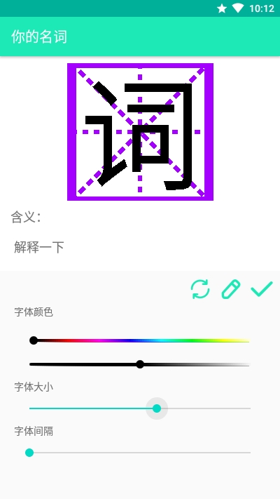 你的名词app这款软件非常有趣味性,可以让用户打造属于自己的专属名字,虽然没有太大的实用性,但是趣味性非常强。用户打造出自己喜欢的名词,然后可以通过截屏等方式记录下来发送给朋友分享。如果有感兴趣的朋友,可以下载这款你的名词app来进行体验!