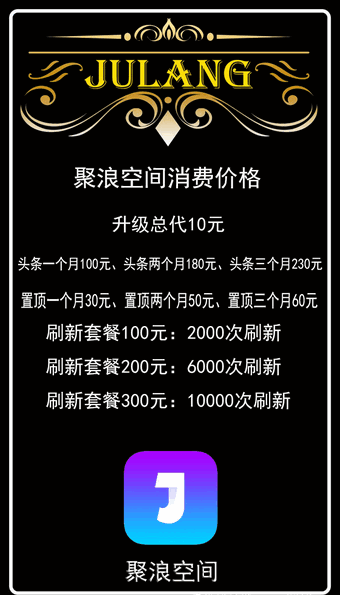 聚浪空间app是国内最大的人脉信息广告平台,项目信息发布,产品名片发布交流,聚浪空间软件打造专业的人脉服务,给电商微商网络项目,互联网从业人员提供优质的人脉服务,聚浪空间app致力于为广大创业者及互联网从业人员打造一个信息化创业交流平台!