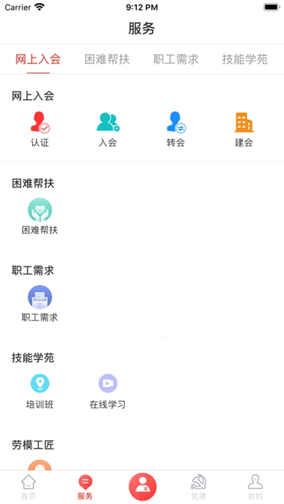 1、平台为大家提供网上入会,困难帮扶,职工需求以及技能学苑等。