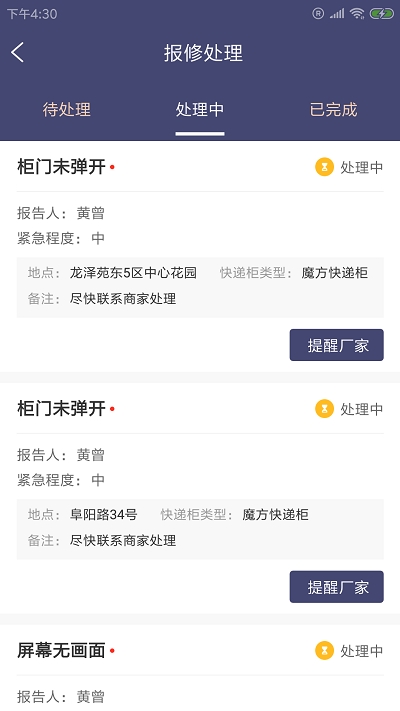 5、完善的库存管理 可通过入库出库等操作对快件进行管理,超48小时提示滞留,取走的会生成电子签名