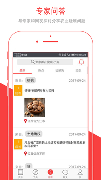 为广大农民朋友提供实用的农业技术。主要包括:找种子、找农资、订阅农业技术、查农业病害、查农业虫害、农药、农业机械,以及每日更新农业新闻、当地政策、优惠信息等,帮助农民朋友及时获取与农业相关的政策信息,实时了解农业方面的动态,还有问答社区和聊天模块,方便广大农民朋友进行技术交流