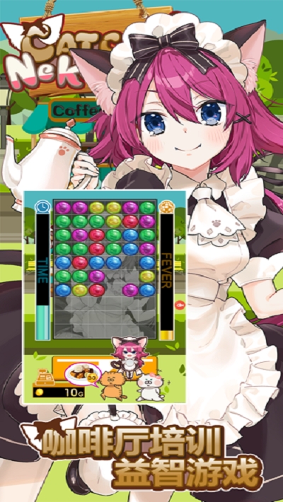 听到这款游戏的名字,大家一定觉得是一款模拟咖啡厅的玩法吧,但其实该游戏主要以在线消除为主要玩法,游戏当中,虽然你作为咖啡厅当中的猫仆经营门店,但在这里的各种食谱和服装都是需要你进行挑战解锁才可以获取的哦。