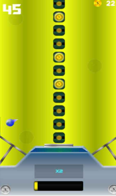 锻炼你的反应能力,屏幕中央会生成一个随机排布且运动的墙,玩家需要操控一个在屏幕中央跳跃的小球,通过点击屏幕两侧的空白区域来改变小球跳跃的方向,确保小球能够平安的从金币砖之间穿过,同时不要让小球离开屏幕,一旦撞到屏幕边缘,游戏也会结束