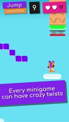 迷你扭曲的游戏中有着各种各样的小游戏可以体验,玩家需要时刻保持十二分的注意力来应对游戏的变化,因为你上一秒还在这个游戏当中进行跳跃,下一秒可能就换成了另外一个游戏玩法,所以千万不要被眼前的画面所迷惑了哦!