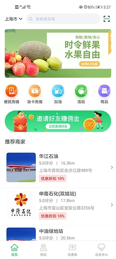3、点击加油、商品等界面即可完成相应的优惠购物