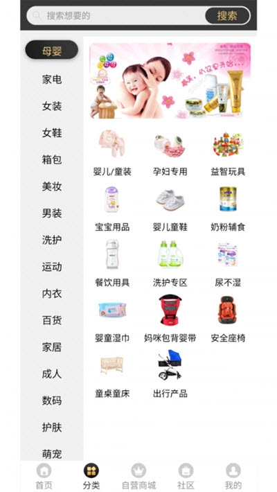 详细划分的商品种类,结合智能搜索的功能,让每个用户都能快速找到