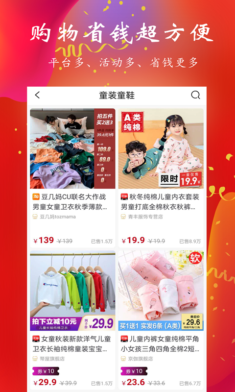 万人省平台上覆盖的商品品类很齐全,不同类型应有尽有,分类也很细致,选择更轻松,还能一键搜索自己想要的商品,每天都可以在这里领取各大平台上面的商品优惠券,打折活动也很多,让广大购物者们可以体验到更多乐趣,在这里购物买到就是赚到。