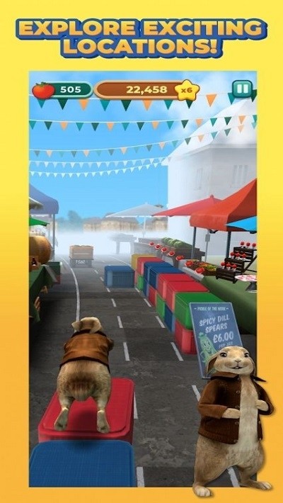 1、彼得兔跑酷玩家简单的避开所有的障碍物,途中的任何道具都能帮助到你。