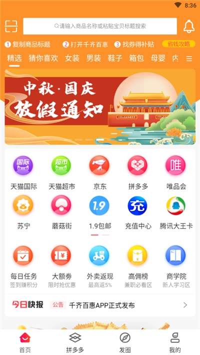 千齐百惠---网购省钱小助手,佣金高才有诚意! 通过整合淘宝、京东、拼多多、唯品会、蘑菇街等多家电商平台的商品数据资源,打造超级购物电商平台,全网优惠商品一网打尽。