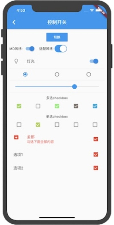 单击主页上的列表项以查看不同Flutter组件的演示,源代码仅是预览!