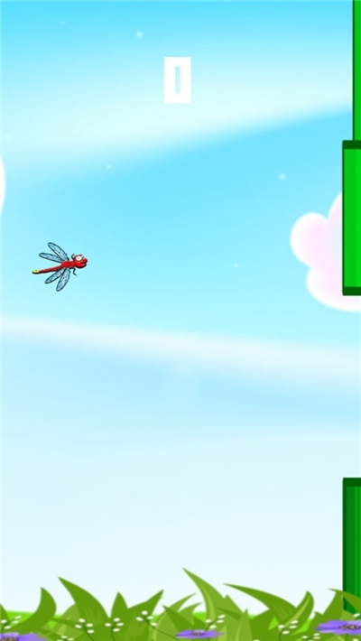 游戏的玩法很简单,玩家只需要点击蜻蜓就可以进行游戏,点击一下蜻蜓就会向上飞,放松就会快速的下降,所以你需要间断的点击,控制好蜻蜓的高度,不然会很容易撞上那些坚硬的墙壁的,一旦碰上墙壁就会死,命只有一条。