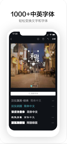 在图片中添加文字或标题,让设计具有你自己的个性。按照你的风格从 100 多种字型中进行选择。调整文字的字型大小、颜色、位置和旋转,完善你的设计图片。