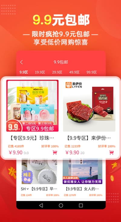 9.9元包邮:优惠不断,限时疯抢9.9元包邮。享受低价网购惊喜。