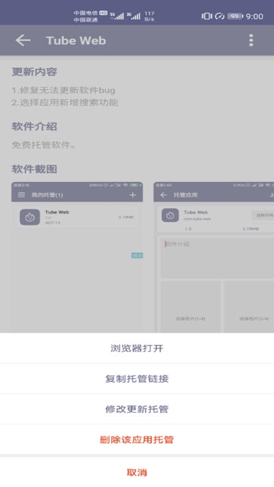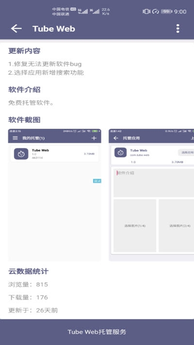 Tube Web应用托管永久免费app可以帮助用户将apk转化成一个可以下载的链接,这样可以方便用户将自软件分享给别人进行下载。同时软件也能创建应用管理,里面有各种参数,可以获取各种权限。如果有朋友感兴趣的话,可以下载Tube Web应用托管永久免费app进行体验!