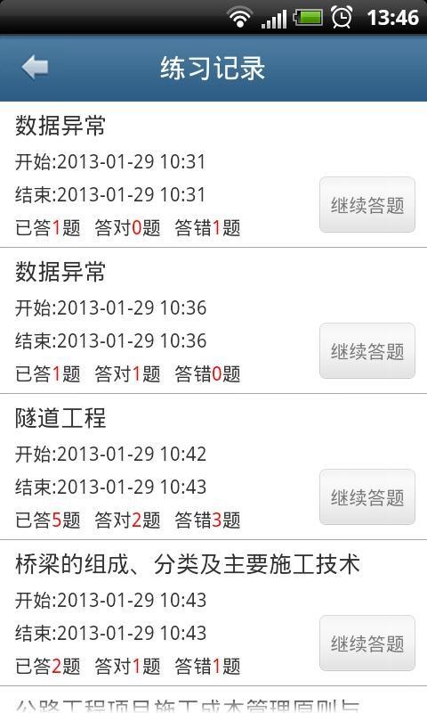 考生在任一时间的答题记录均会形成列表,下次考生可以选择续做