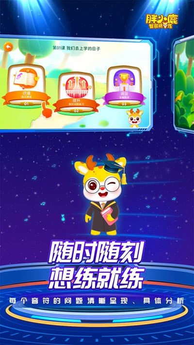 【AI纠错,简单有趣又高效】 智能小鹿陪伴孩子练琴,边弹边纠正错音,错节奏,督促孩子改正,实时激励孩子,让孩子学琴更主动,练琴更高效! 孩子练琴弹错了不知道,练习效果越来越差怎么办?使用胖小鹿智能陪练,智能小鹿实时纠错,督促孩子改正,每次练习都会有更多的成长