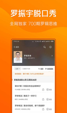 七季罗辑思维只在得到。“罗胖”罗振宇每日与你分享他的学习心得与收获,推荐好书好知识好观点。