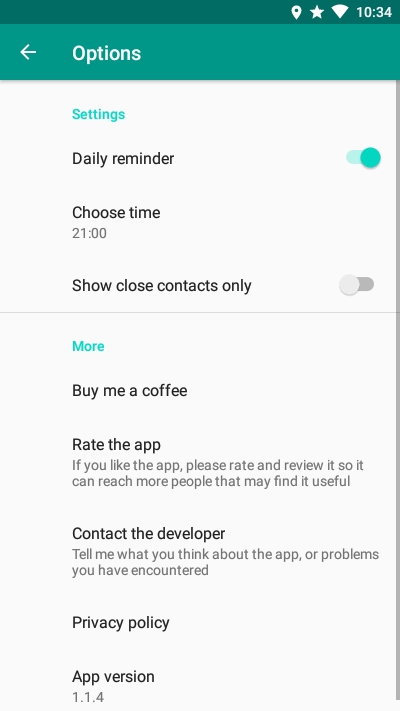每天,Contact Diary都会提示您插入您参加的活动以及白天与您在一起的人。通过一些简单的表格,您就可以存储有关联系人的基本信息,以备不时之需。只是。简单吧?;)