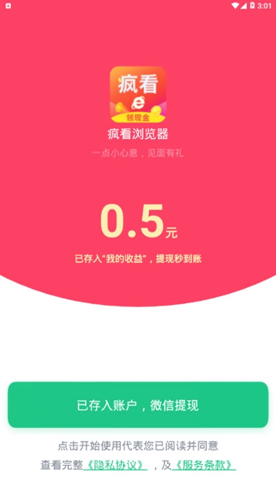 疯看浏览器赚钱领现金app是仅仅是一款功能强大,速度极快的浏览器,这款软件更有帮助用户赚钱的功能。用户每天查看浏览器首页的推荐内容,然后转发分享推广即可获得大量的现金奖励。可以说这款疯看浏览器赚钱领现金app既然用户可以快速上网,又可以赚钱,是非常是值得下载体验使用的!