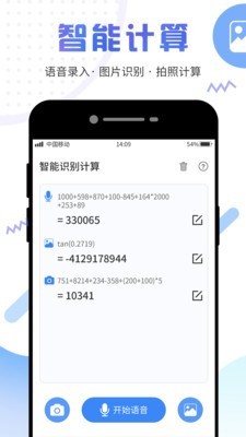2)支持语音输入,口述公式,不用手点直接出运算结果,识别率100%