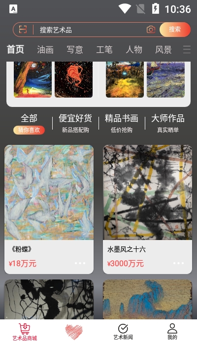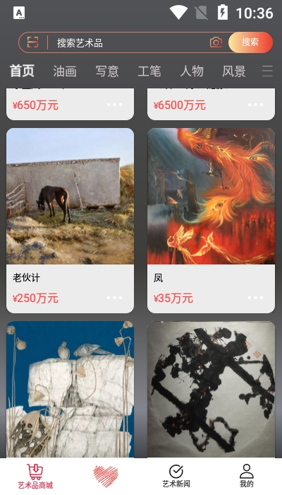 1、涵盖了艺术相关资讯内容,以及商品交易信息,通过艺品兑app随时在线了解示全球各位书画家的作品。