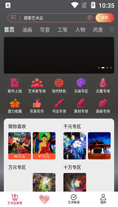 艺品兑app可以为用户提供一个非常专业安全的艺术品在线交易平台。这里有海量精美的艺术品,用户可以在平台上随时查看欣赏自己喜欢的艺术品,并且还可以了解到各种艺术品的交易状态。如果遇到特别喜欢的,用户也可以直接在线上购买,之后会有专人配送。喜欢艺术品的朋友千万不要错过这款艺品兑app!