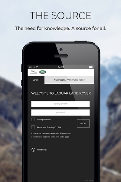 该应用程序仅适用于授权用户,因此需要培训ID / PIN和密码。密码处理过程很简单,允许创建一个易于记忆的密码,以与官方Jaguar Land Rover培训ID / PIN一起使用。