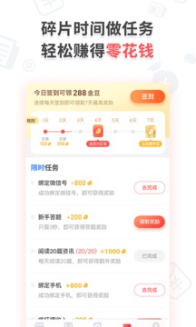 通过每日签到、简单做任务领取丰厚金豆奖励,金豆可随时兑换现金。