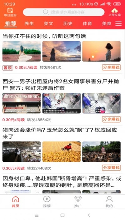 转发文章/视频阅读单价全天0.3元,支持上传文章,上量速度快