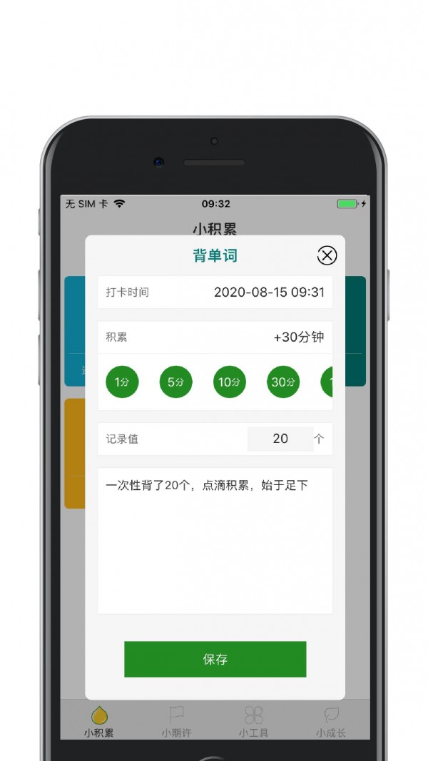 小积累是一个以目标实现为目的,注重习惯养成和过程追踪的应用。在你定下目标后,你的目标实现过程,每一次点滴付出,都可以在小积累中进行记录。